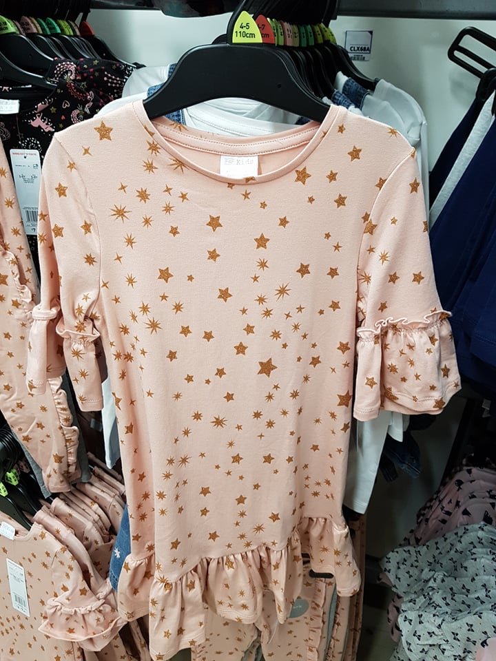 In Tesco this week for younger girls, I loved this pink and rose gold star dress and matching frill leggings. Dresses as you know by now are a firm favourite of mine because they double up as tunics/tops for little girls. The leggings is a two part set, with a grey frill pair and the matching pink and gold star pair. (I had to buy this)