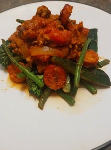 Life being generally very busy at the moment and the fact that we are eating out and about or having quick dinners has meant I haven’t been online much as of late. Tonight’s meal is probably already a household staple in your own home but those who I have shared my own take of Spaghetti Bolognese have liked it and the extra bits that I do to mine, so maybe this is a little different to how you make yours . I’d love to hear what you think of my version and what you do to your own to spice it up. By the way this is one meal that my kids will eat several days in a row so I tend to batch cook it, serve it with whole-wheat spaghetti the first day for the kids, fusilli pasta the next, stuff a pepper with the mixture if I am doing a low carb meal or as pictured here serve it with wok fried greens.