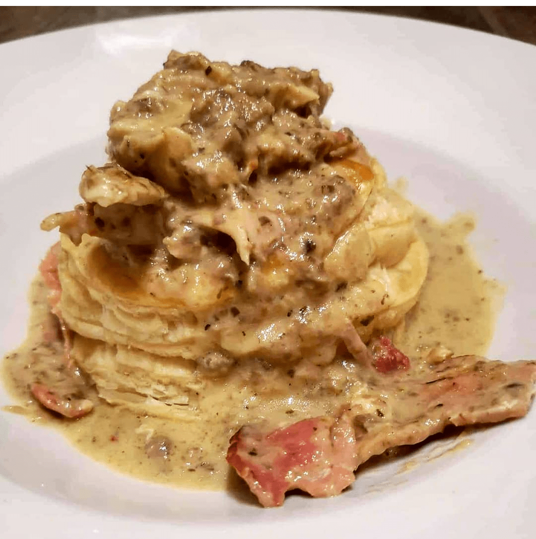 Add your chicken and rashers to the sauce and ladle into the vol au vents. Serve with mash potato, home-made chunky chips or vegetables of your choice. Perfect for a cold January evening, I hope you enjoy xx